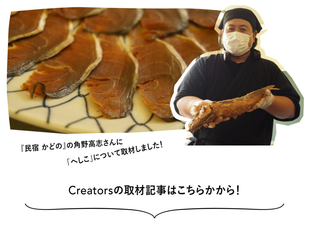 そのワークショップで取材させていただいた『民宿 かどの』の角野高志さん。小浜の名産品である「へしこ」生産者の中でも一目置かれる独自の製法や取り組み、おいしさの秘密、角野さんてどんな人?!をCREATORSが取材しました!