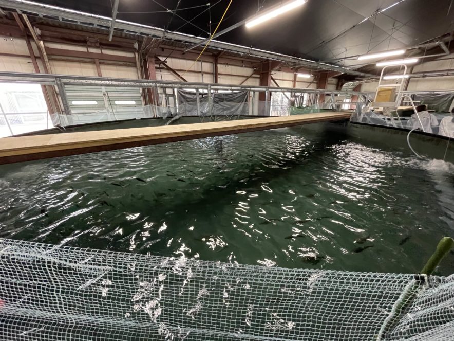 北山さんによると、日の当たる条件と日の当たらない条件で、サバの成長に違いがあるかを比べているそうだ。日の当たるほうが餌を多く食べ大きく育つが死亡数が増え、日の当たらないほうは餌をあまり食べないが死亡数は減るそうだ。センターではこのように実験的な飼育も行っている。