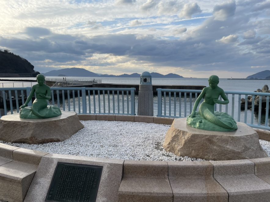 小浜を訪れると、多くの場所で「人魚」を目にすることになる。その多くは土産物のパッケージやモニュメントとして取り入れられている。