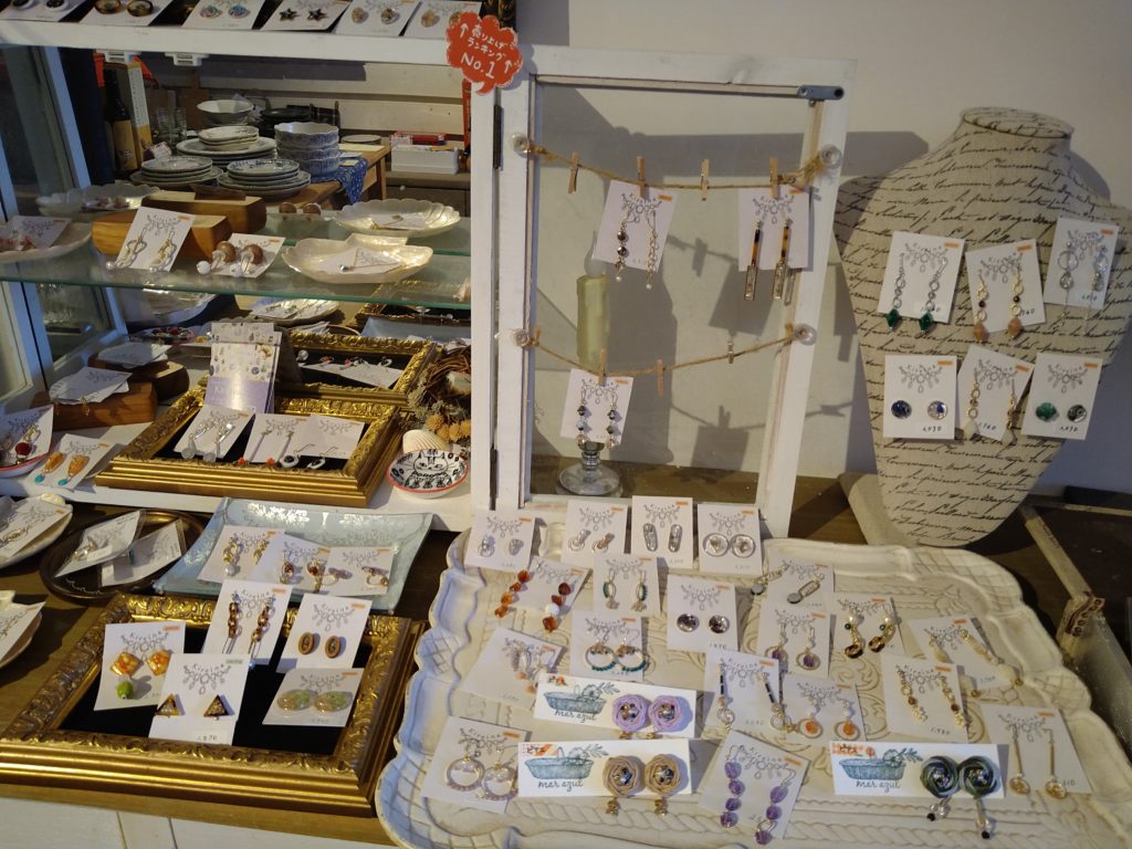 おすすめの商品を聞いてみると、オープン当初からお世話になっている作家さんがつくるイヤリングやピアスなどの「ハンドメイドアクセサリー」とのこと。また、お皿やエプロンなどの日常生活で使う商品や紅茶もおすすめだそうだ。お店に並ぶ商品は、カラフルな色遣いやデザインで、どれも見るだけでワクワクするようなものばかり。頑張った自分へのご褒美にも、大切な相手へのプレゼントにも素敵な商品ばかりがそろっている。