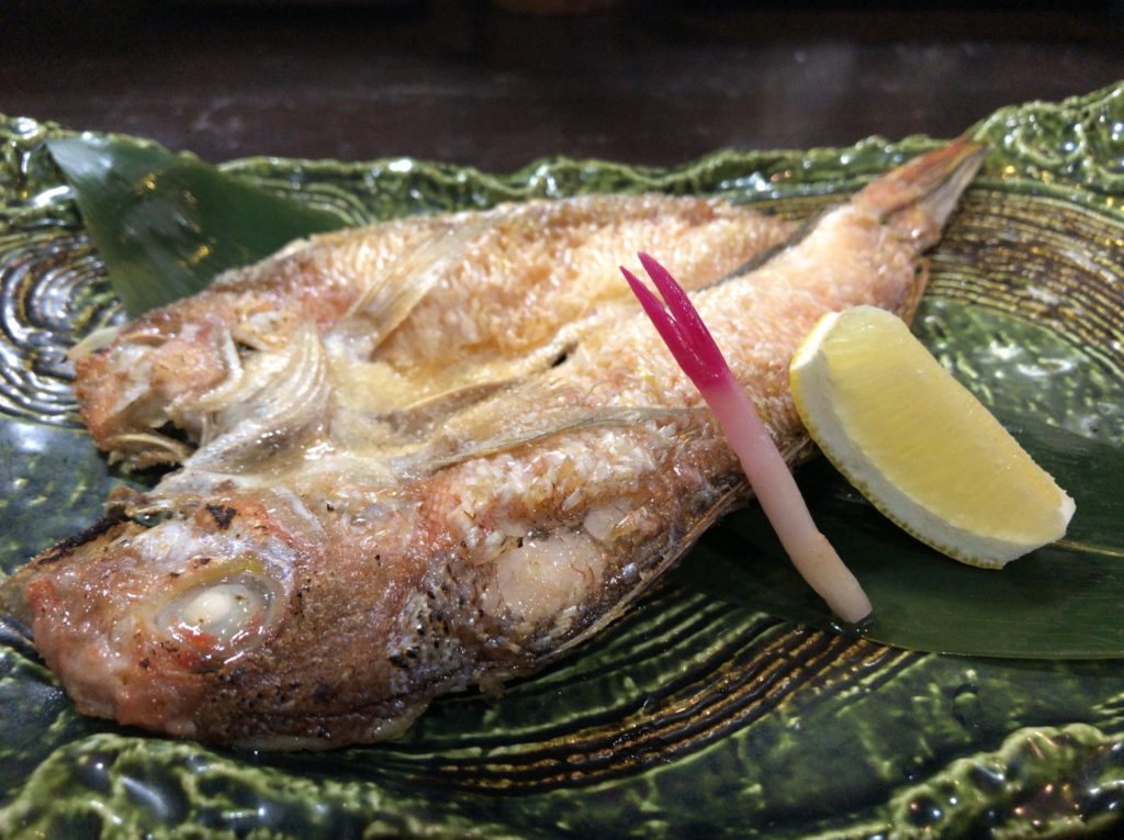 お店には地元の方だけでなく、嶺北や県外から訪れた方も常連となってくれるほど評判のお店だ。海産物や野菜など若狭小浜で採れたものをふんだんに使ったメニュー豊富なオバママ。その中でも締め鯖と甘鯛(若狭ぐじ)の若狭焼は特に人気があるとのこと。甘鯛の若狭焼は焼く前に表面を一度油で揚げるため、鱗がパリパリと香ばしく、身がふわふわ。香りも味も絶品。その上、1匹丸ごと提供されるためインパクト抜群だ。