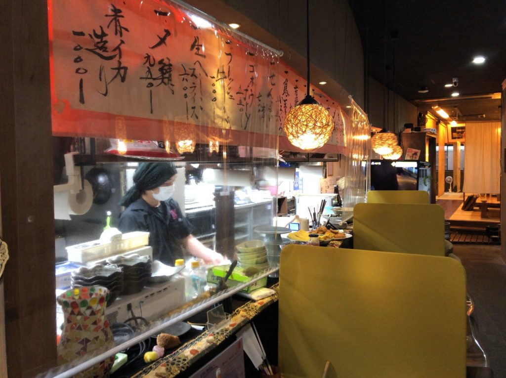 「お客さんにリラックスしてもらえることは心がけていますね。話をしたそうなお客さんがカウンターに来られたら積極的に話しかけます。もちろん、会話したくなさそうなお客さんには話しかけません(笑)。なので、会話のネタになる小浜のこと、ニュースやスポーツなんかの情報は常にアンテナを張っています。また、お店自体の設計もそうで、カウンターや座敷のテーブル席は、椅子、机の高さなど、お客さんに居心地が良いと思ってもらえるよう調整しています」。