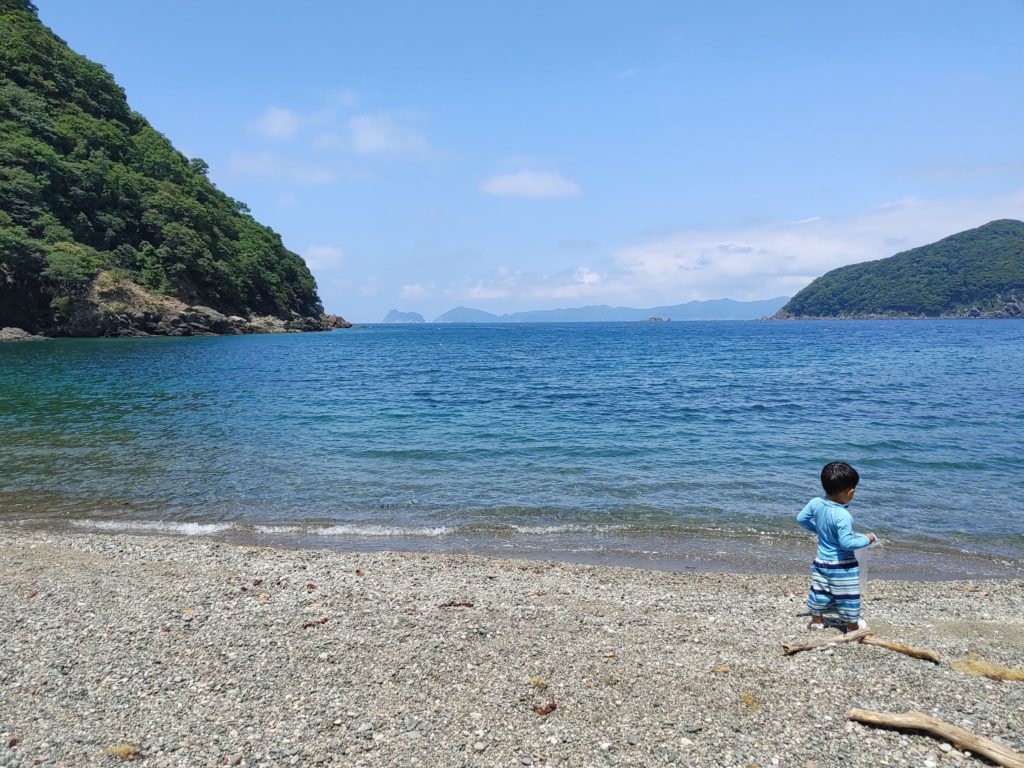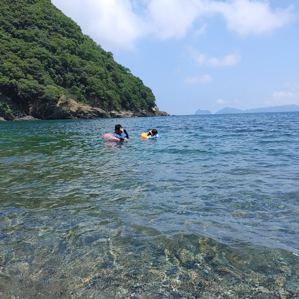 「船でしか行けない」このワードが私の好奇心を呼び起こし、これは家族で行ってみたい!そこから私の行動は早かった笑。すぐに検索し、宇久地区にある漁師民宿でファンの多い「うらたに旅館」から船で出ることが分かり、折角ならと浦谷旅館を予約し、宿泊した翌日に滝の尻浜海水浴場に行ってきました。