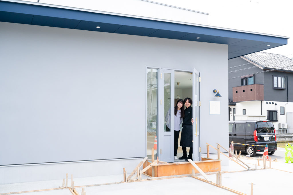 「近所の方も気楽に立ち寄れるやわらかな雰囲気だけど、売ってるものはしっかりした品質のもの。テーマカラーのブルーグレーも、ただのグレーだと高級感が出過ぎてちょっと冷たくなってしまうような気がして、やさしい中にも高級感のある堅苦しくない色にしました。夫婦で好きな色だったというのもありますが(笑)お店では、ぼくが厨房で妻が売り場を担当します。でも、妻も製菓専門学校の出身なので製造のサポートもしてもらいます。」