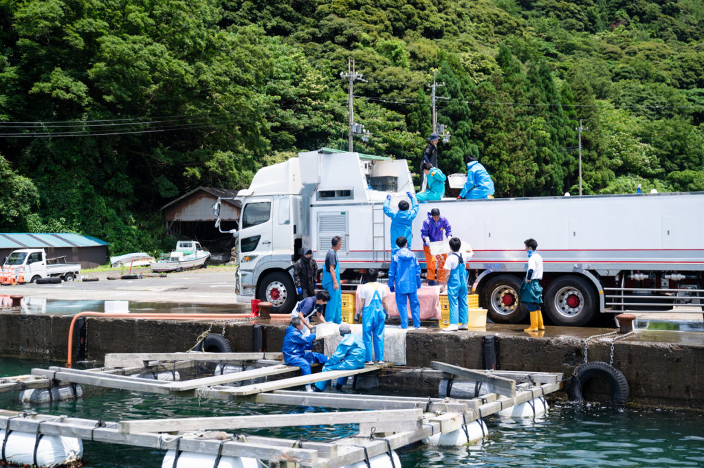 たまたま見ることができたサバの種苗搬入。小浜よっぱらいサバは、小浜という自然環境で育てられるだけではなく、何事にも真摯に向き合う育てる人や支える人たちの丁寧な想いが詰まった、小浜らしいブランド魚だ。