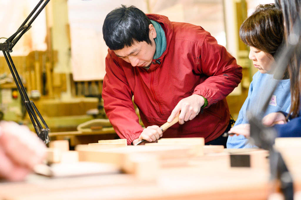 「山」のツアーでも、地域の暮らしに関するお話を聞いて、国宝「明通寺」の普段は聞けない話?を聞いた後、地元野菜を使ったその日だけの特別な料理をご堪能いただきます。そして、お食事で満足したら、山の空気を感じながらの木工体験。絶対気持ちいいです。
