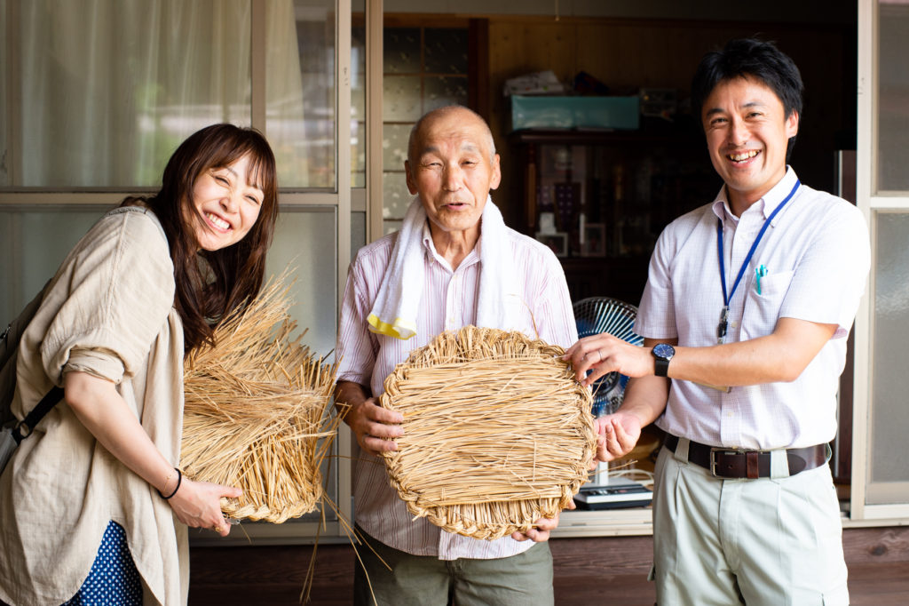自宅のテーブルランプや机、駐車場の扉など、大下さんの優しいアイデアで作られた作品を見せてもらい、別日には桟俵の編み方まで実演してくれた。「わしは一人暮らしやし、何か頼まれるってことは人と会って話すことやろ?幸い健康やし、みんなのために自分が役に立つことがあればなんでもする。誰かと会うことは楽しいやろ」と、話してくれた大下さん。