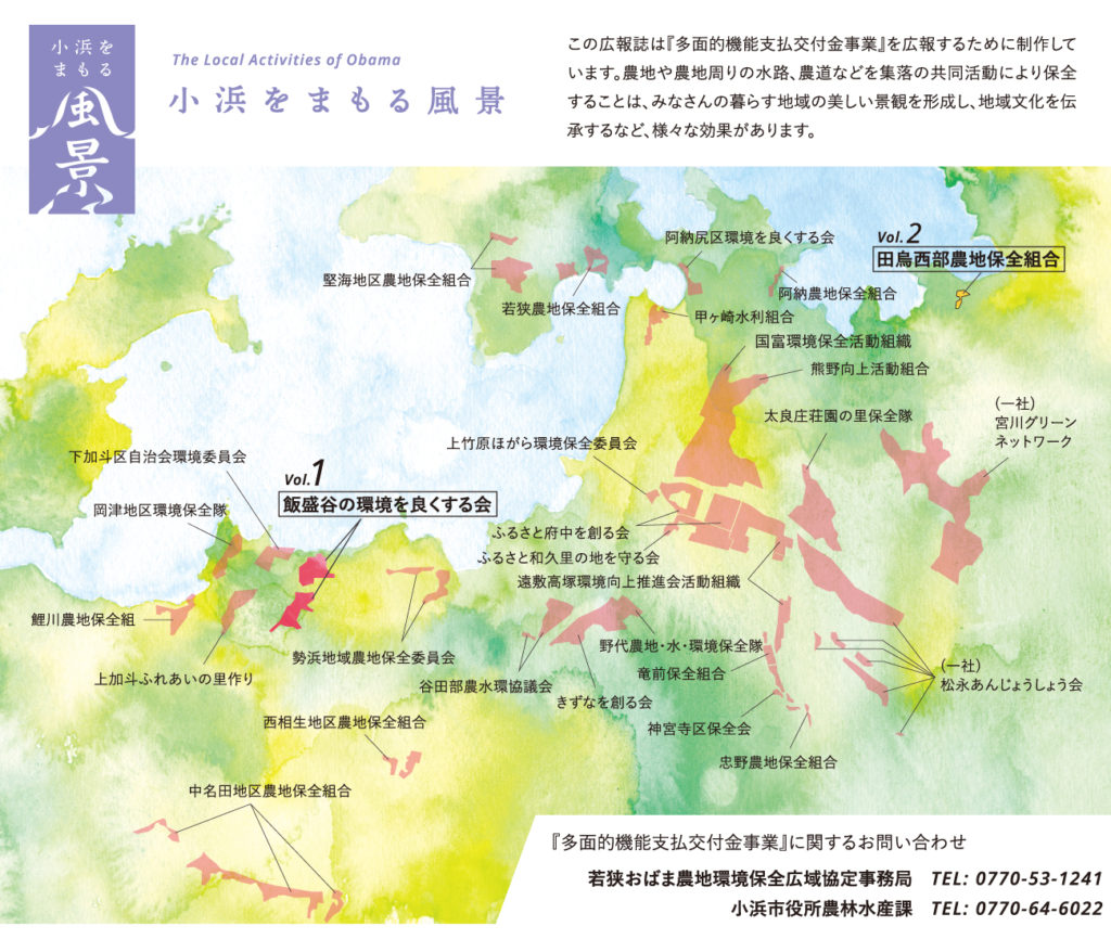 小浜の風景をまもる人や活動を伝えるパブリックマガジン『小浜をまもる風景』は、小浜市内の各公民館または、小浜市役所2階の農林水産課前で配布しています。このWebバージョンとは違う写真も掲載しておりますので、是非お手にとってご覧ください。