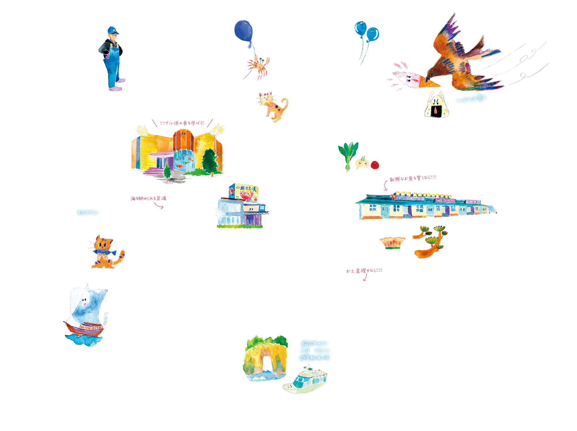 景勝地をめぐる遊覧船や温浴施設、小浜のお土産が集まる観光施設もある!