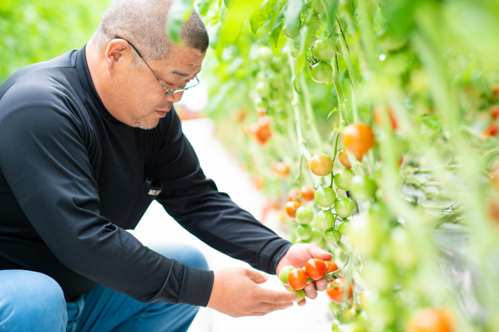 福井県特産の食味最高と言われるミディトマト『越のルビー』を、県内ではじめて年間通して栽培することに成功しました。日本海側の日照条件や降雪など、野菜づくりに不利な条件を先端技術を使いながら克服するモデル事業者として、小浜でできる農業に日々挑戦中。大切にしていることは、おいしい野菜は“人がつくる”ということ。先端の現場で、技術だけに頼らないおいしい未来につながる人づくりにも尽力しています。