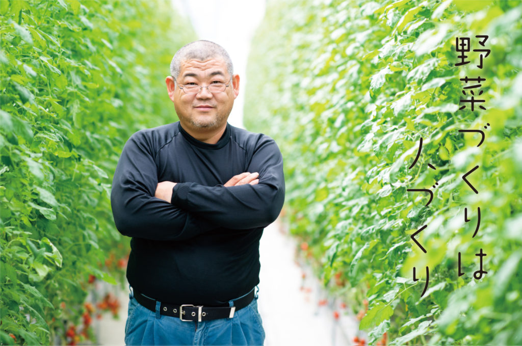 福井県特産の食味最高と言われるミディトマト『越のルビー』を、県内ではじめて年間通して栽培することに成功しました。日本海側の日照条件や降雪など、野菜づくりに不利な条件を先端技術を使いながら克服するモデル事業者として、小浜でできる農業に日々挑戦中。大切にしていることは、おいしい野菜は“人がつくる”ということ。先端の現場で、技術だけに頼らないおいしい未来につながる人づくりにも尽力しています。