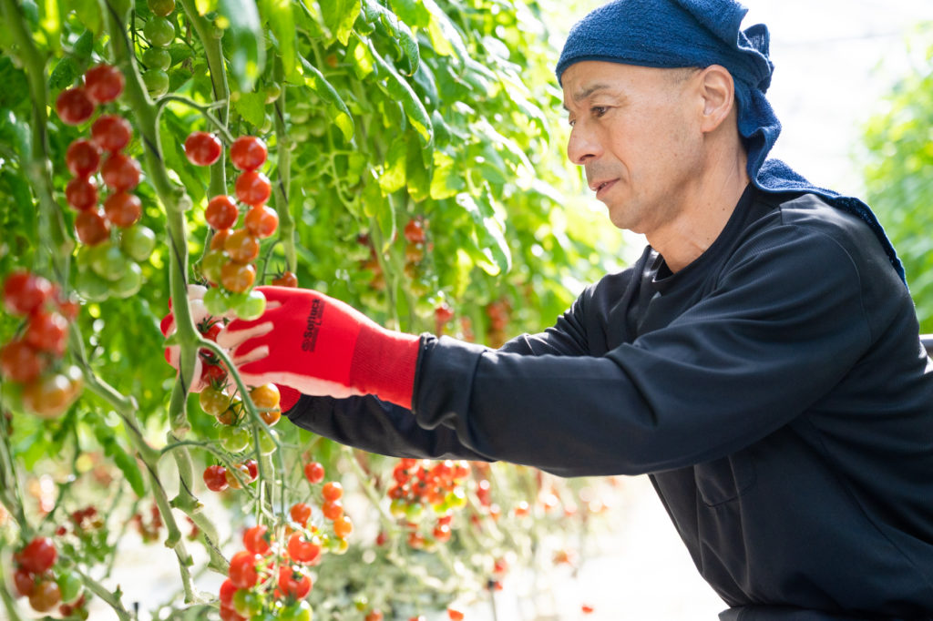 糖度を上げるため、実が赤くなってからも、ギリギリまで待ってから収穫しています。収穫のタイミングは、野菜も生き物なのでいつも同じ色の時ではなく、季節による成長スピードや外気温を考慮して、ここだ!という時を判断しています。