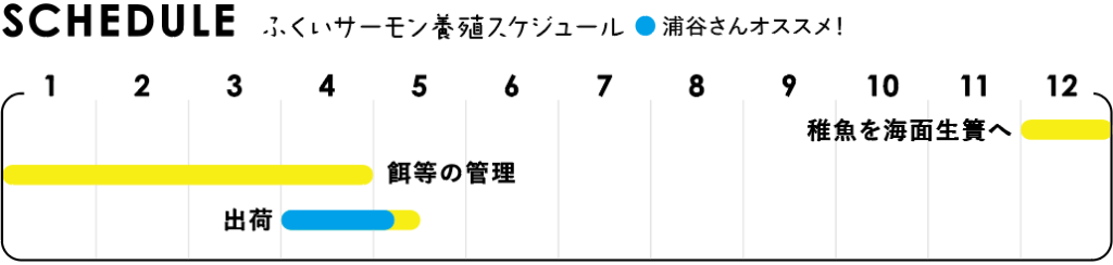 久須夜ケ岳からの養分と、ほぼ外海の高い塩分濃度の海水と潮の流れによって身の引き締まったサーモンになります。福井県立大学と協力して作成した、サーモンに最も適した配合飼料を与えているため、脂が乗り過ぎず臭みがありません。初めて食べた時、あまりのおいしさに驚きました(笑)