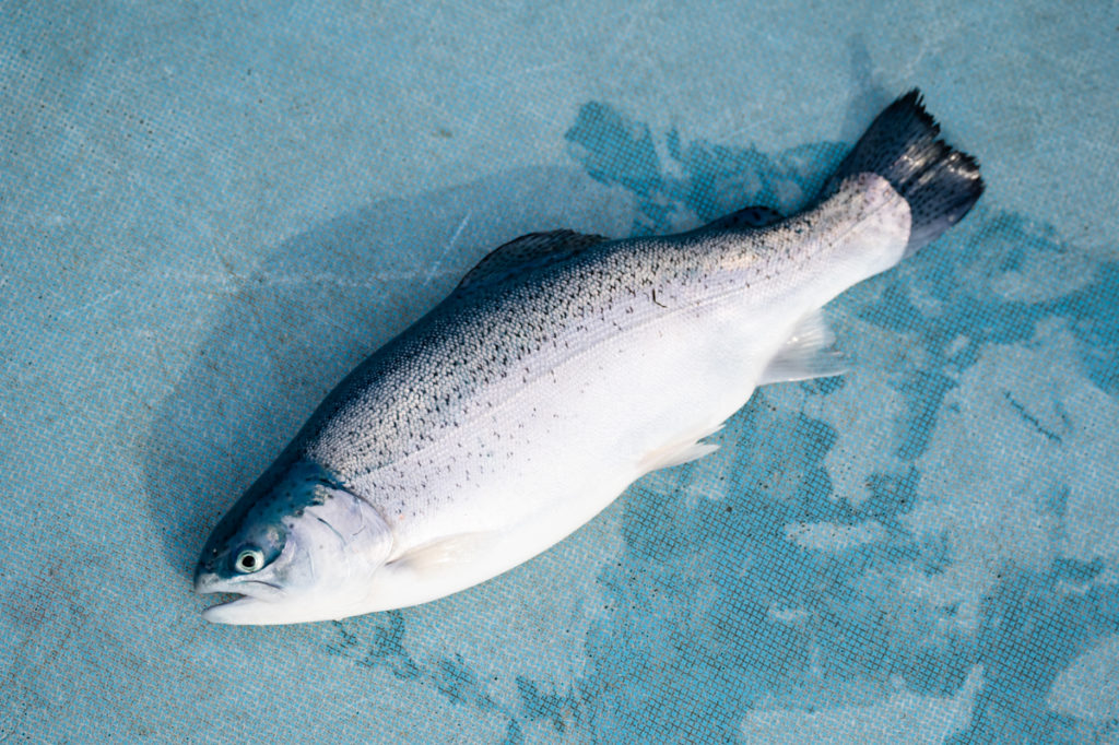 ふくいサーモンは「トラウトサーモン」と言って、海水を用いて養殖した元ニジマスです。海外では海で生活する「降海型」のニジマスがいるそうですが、外来種となる日本の天然は、ほとんどいないそうです。