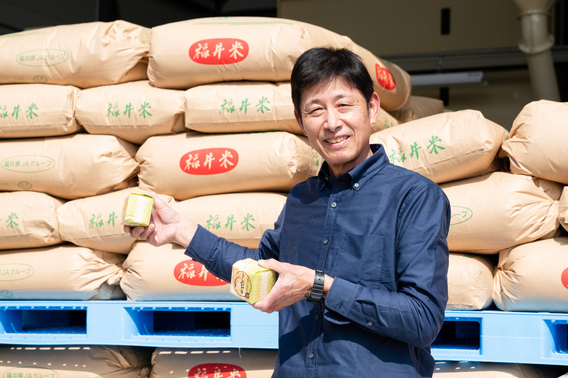 少量パック詰や真空パック詰め、無洗米商品などの便利な精米商品づくりをしています。幅広い世代と立場の人に選んでもらえるようなパッケージ、米袋も重要なポイントです。前職で営業職を長年やっていたので、その経験を活かして自分の商品は自分で営業を行い、販売につなげています。それこそ、農業を始めたばかりの頃は今では考えられないほどガムシャラに営業していましたね(笑)