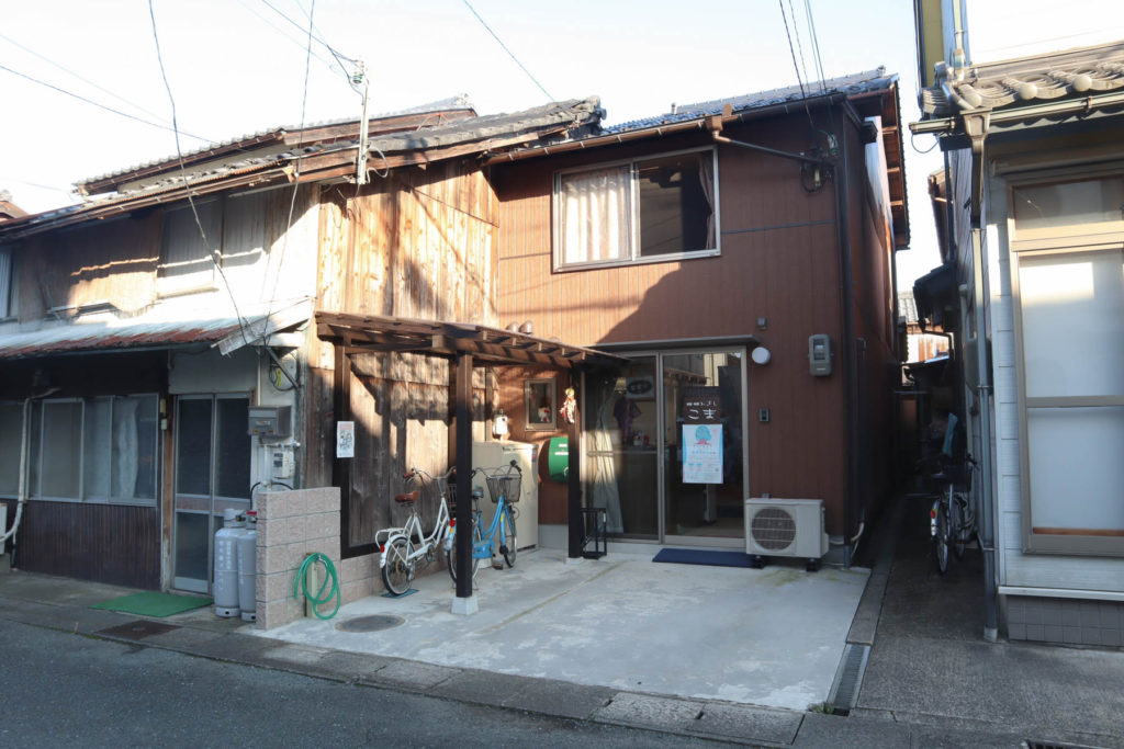 小浜郵便局から川崎の魚市場に向かう途中、車ですれ違うのがやっとな旧道を進むと「こま」という看板を見つけた。