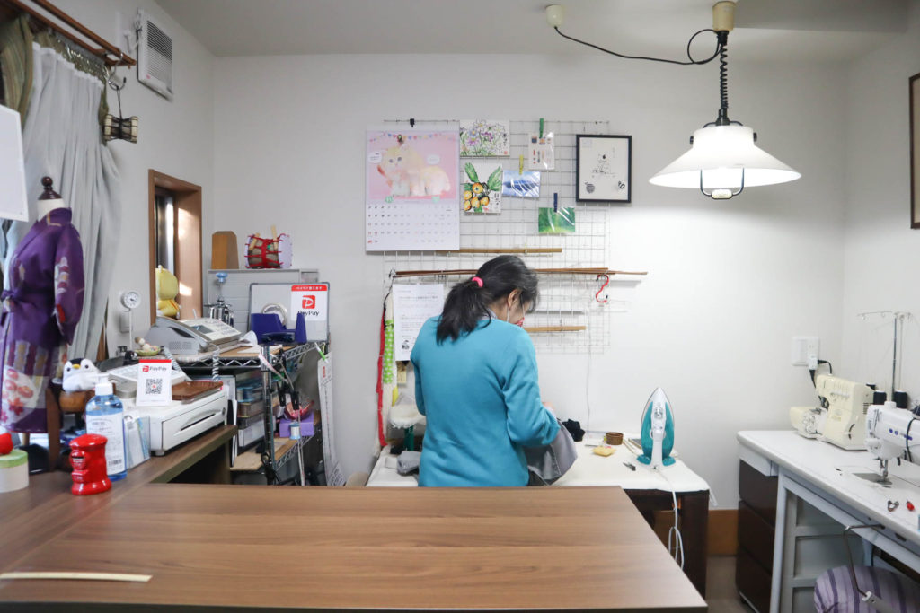 小浜では祭の浴衣の直しも頼まれることもある。祭の文化が色濃く残る小浜ならでは。もちろんシャツの袖直しやズボンの裾直しも。